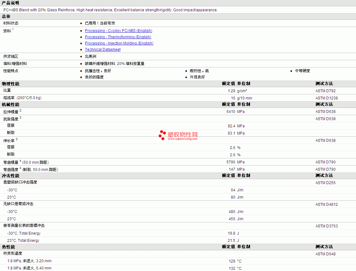 CYCOLOY ABS+PC C4220 Resin 物性表更多资料见图