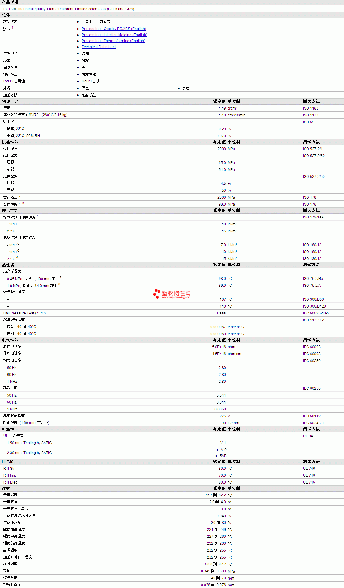 更多CYCOLOY ABS+PC C6850REC Resin物性表报价, UL黄卡、物质安全资料表(MSDS)、报价、等可来电咨询或QQ:767320520
