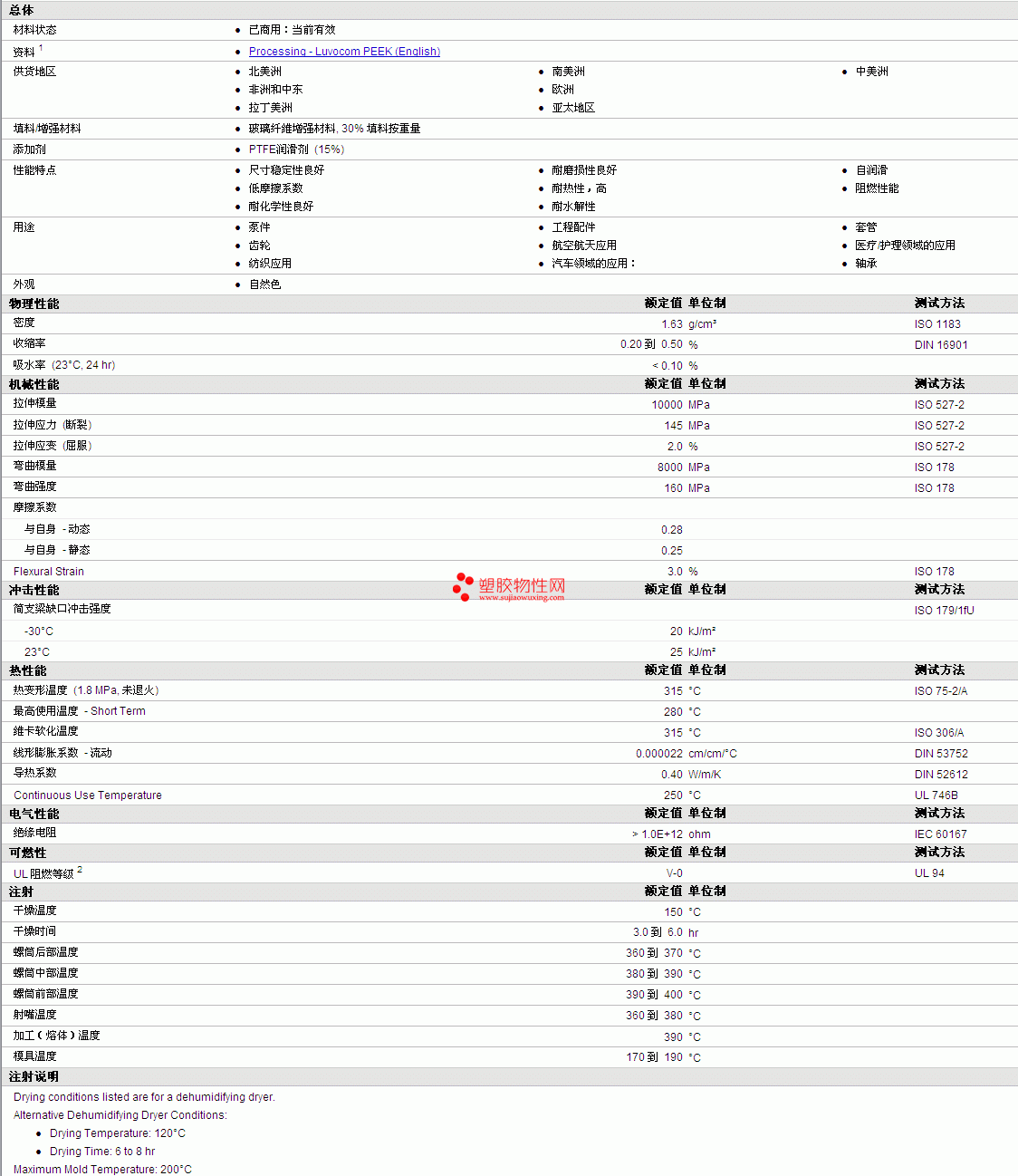 Luvocom PEEK 1105/GF/30/TF/15 物性表详细情况如图