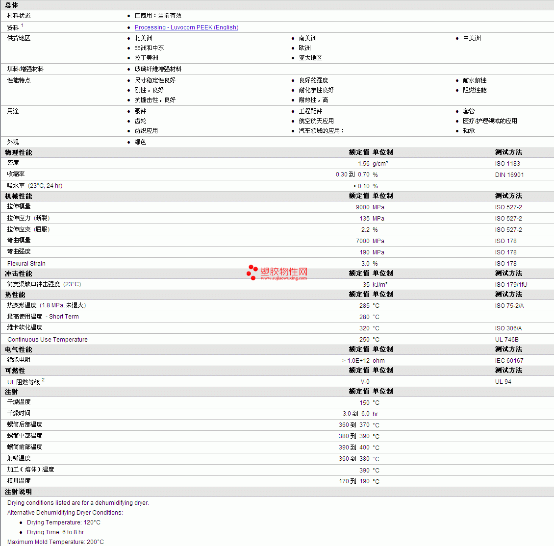 | 拉伸模量 | 9000 | MPa | ISO 527-2 |