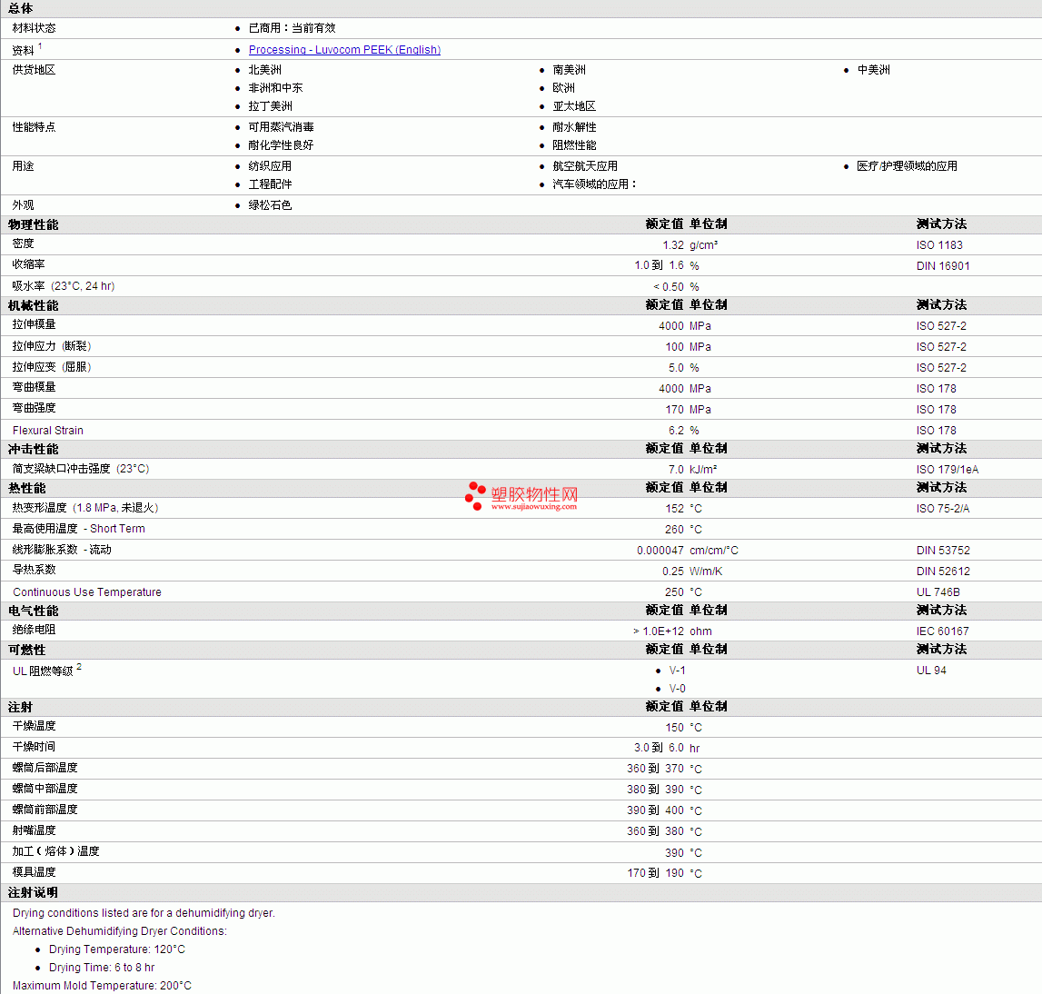 | 机械性能 | 额定值 | 单位制 | 测试方法 |