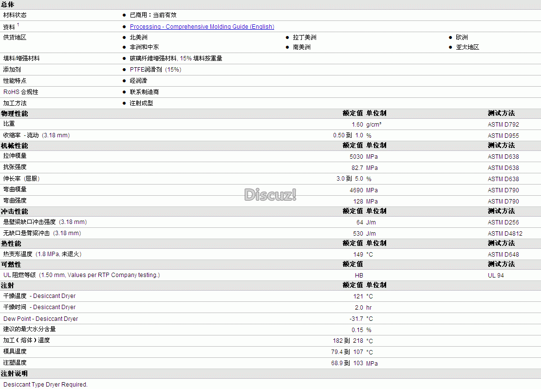 更多RTP Compounds POM 802 TFE 15物性表资料见下图: