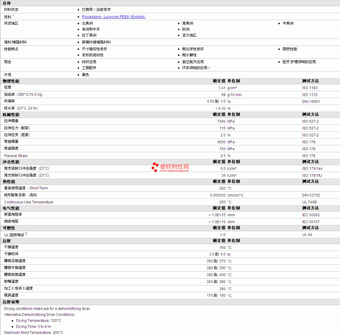 Luvocom PEEK 1105-7107/BK物性表更多资料见图