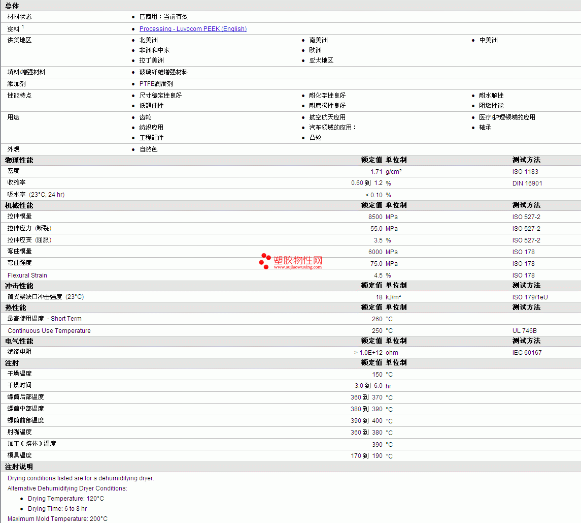 Luvocom PEEK 1105-7583物性表详细情况如图