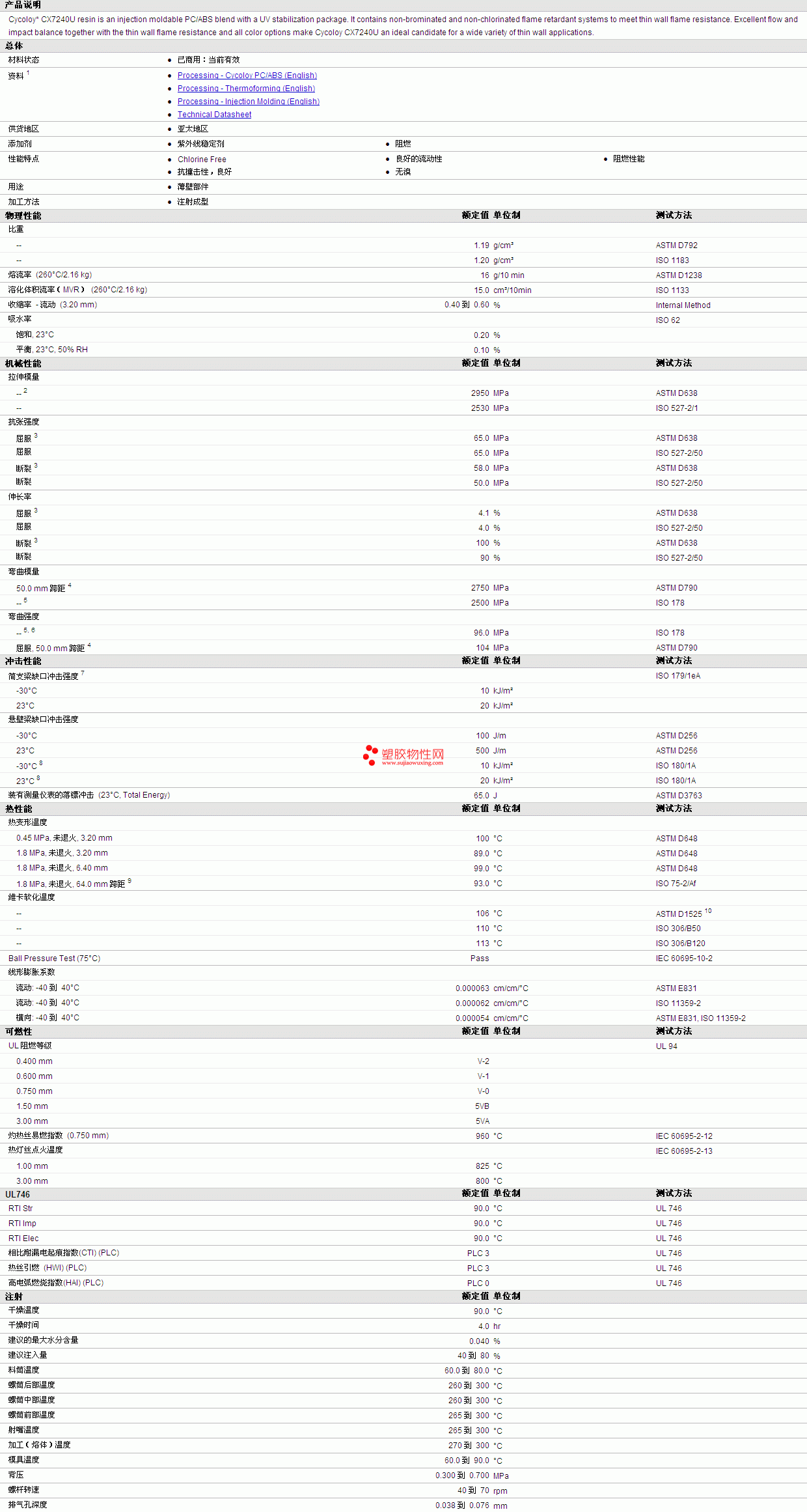 CYCOLOY ABS+PC CX7240U Resin 物性表