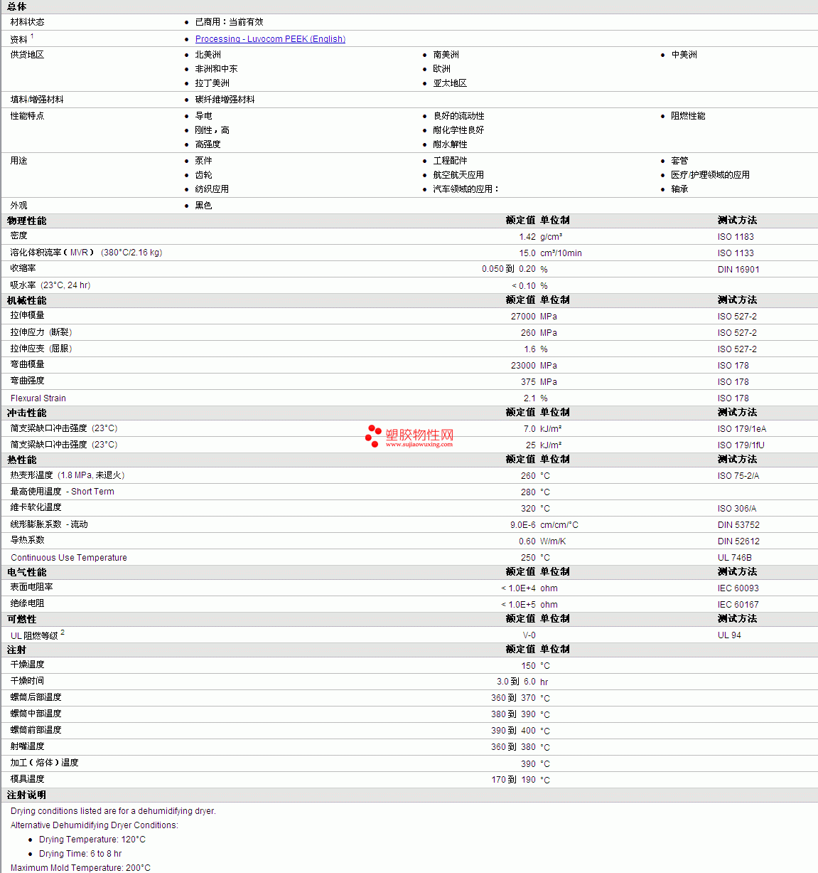 | 溶化体积流率(MVR) (380°C/2.16 kg) | 15.0 | cm³/10min | ISO 1133 |