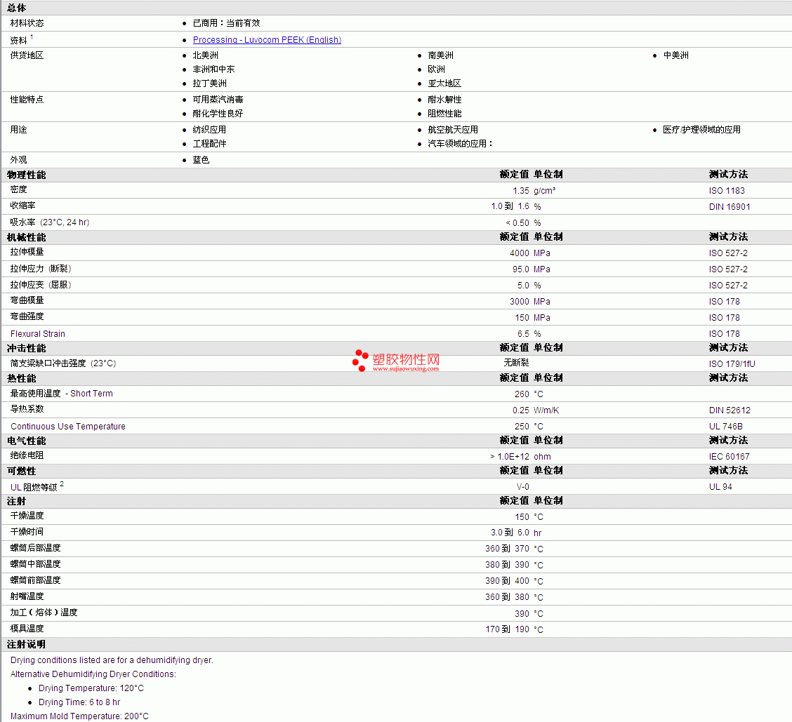 需要了解Luvocom PEEK 1105-7794/BL物性表更多详情,可咨询 赵生:13424755533 QQ:27660005