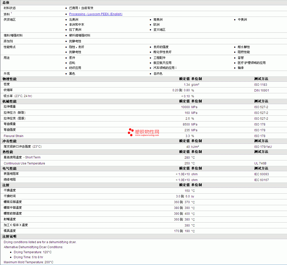 | 弯曲强度 | 235 | MPa | ISO 178 |