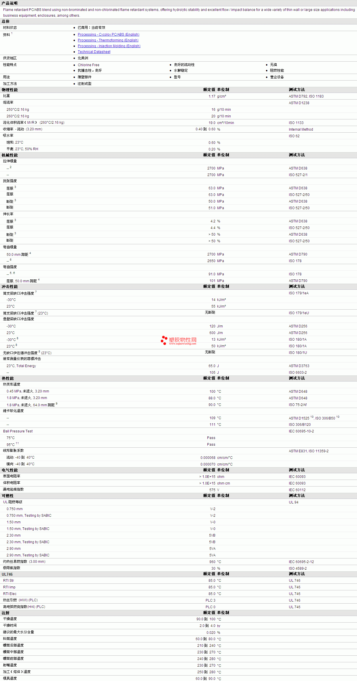 CYCOLOY ABS+PC CY6310 Resin 物性表详细情况如