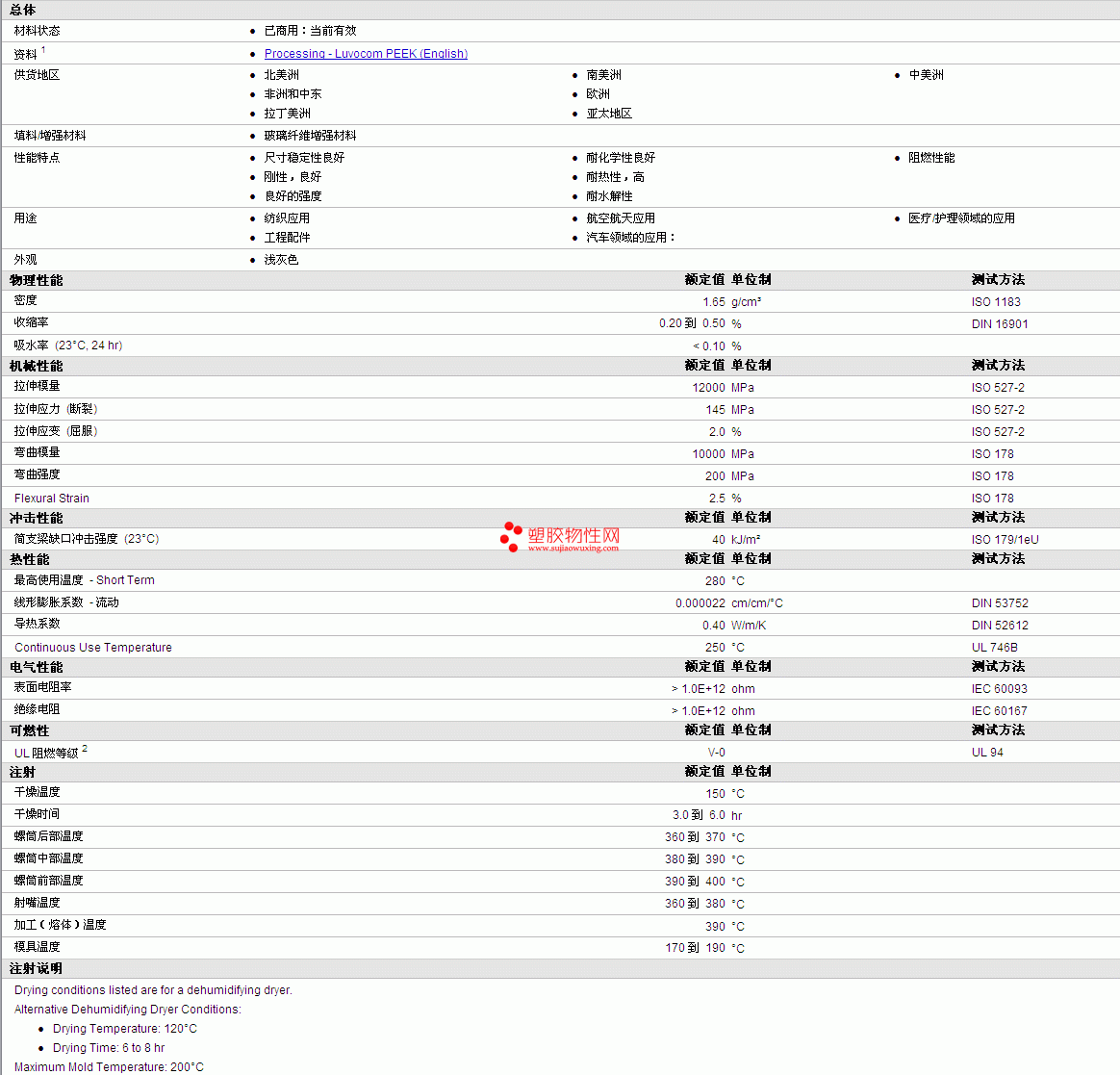 Luvocom PEEK 1105-7938/GY物性表详细情况如图