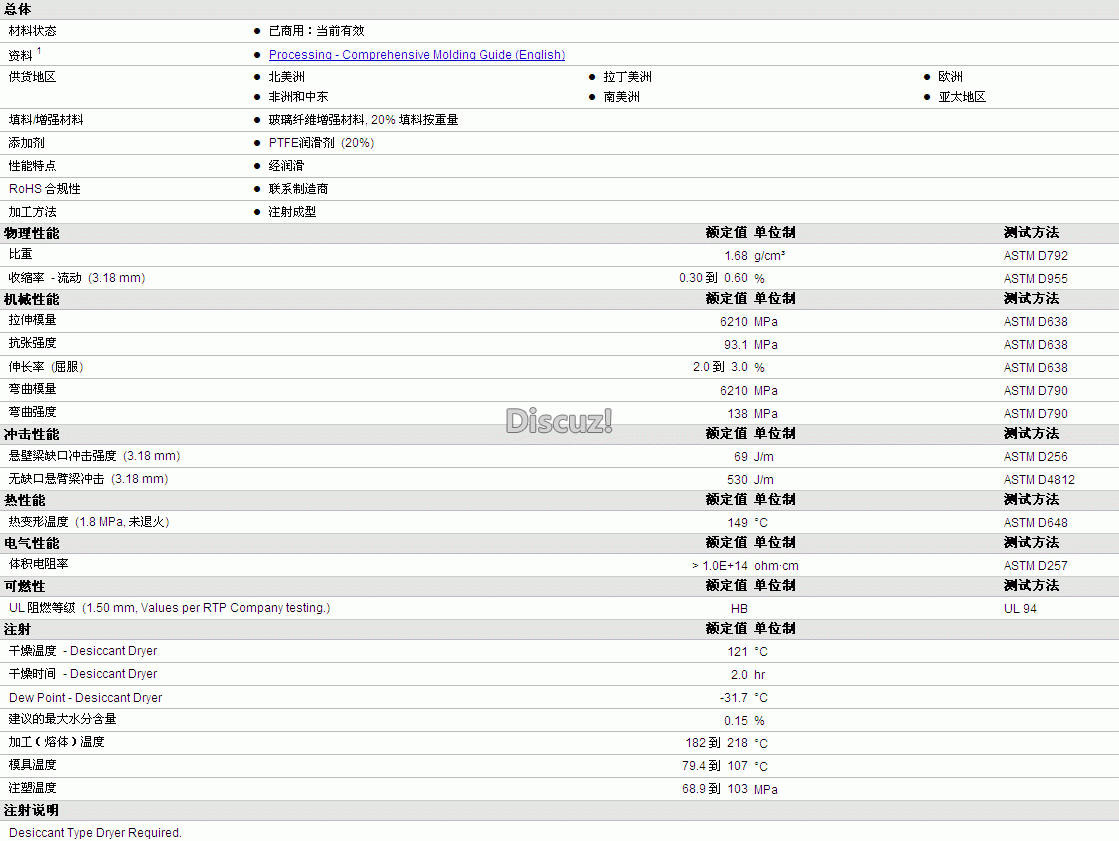 更多RTP Compounds POM 803 TFE 20物性表资料见下图: