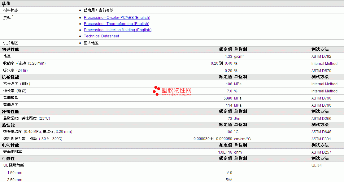 | 机械性能 | 额定值 | 单位制 | 测试方法 |