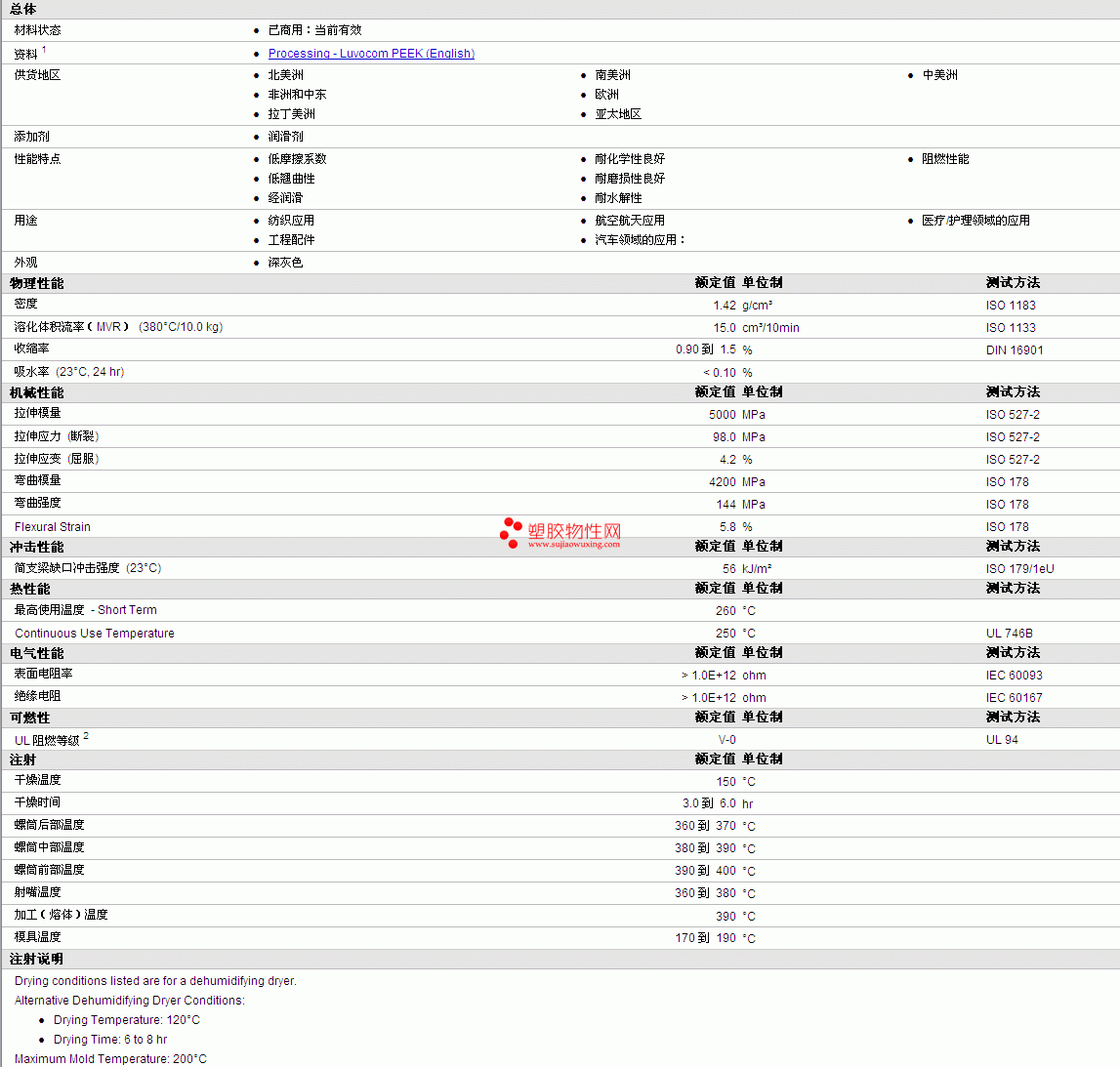 | 溶化体积流率(MVR) (380°C/10.0 kg) | 15.0 | cm³/10min | ISO 1133 |