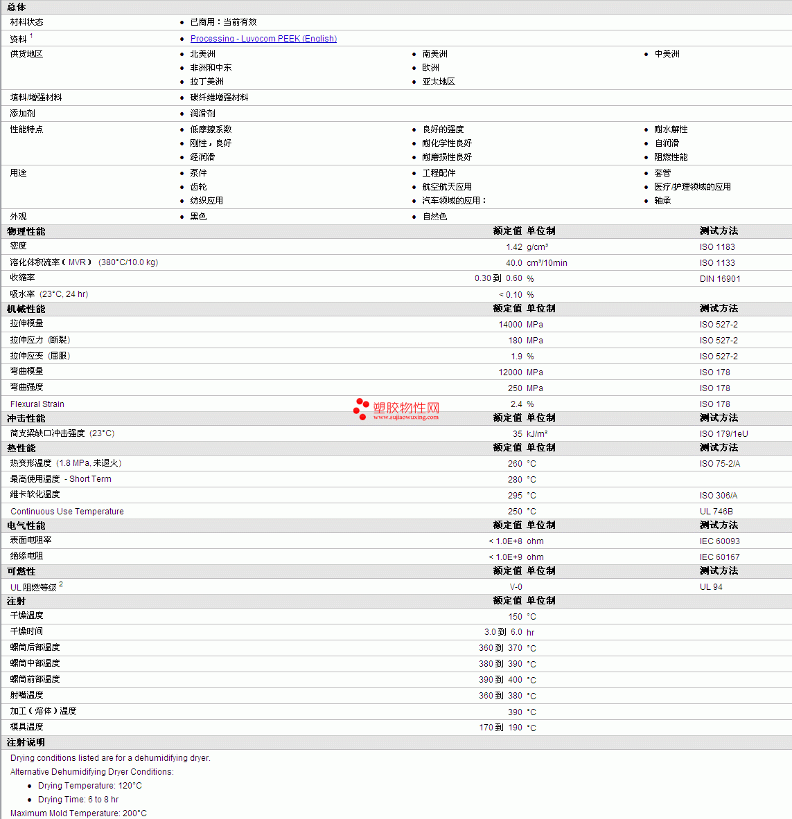 | 溶化体积流率(MVR) (380°C/10.0 kg) | 40.0 | cm³/10min | ISO 1133 |