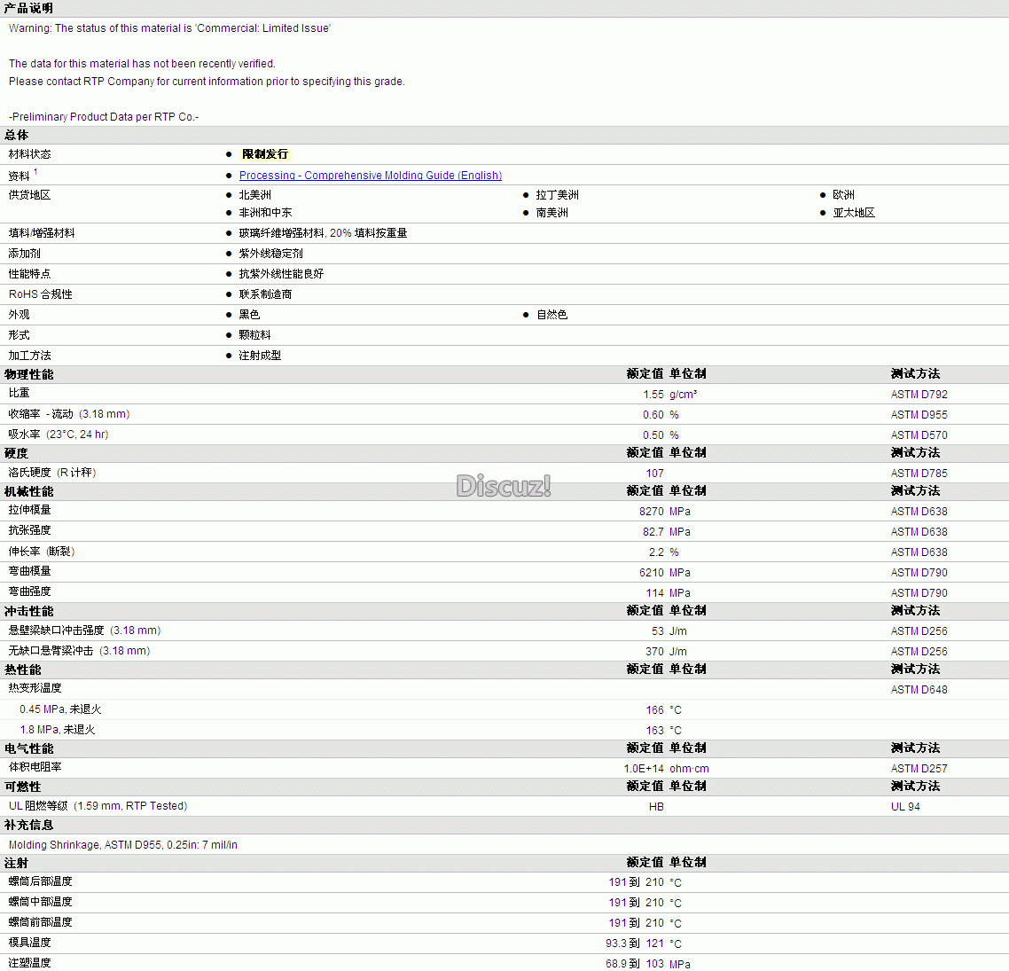 更多RTP Compounds POM 803 UV物性表资料见下图: