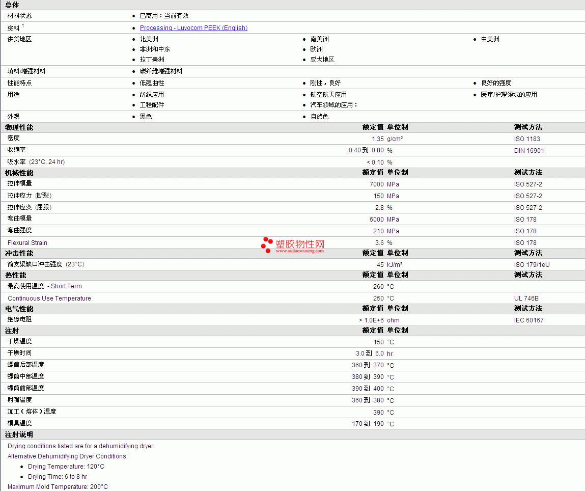 | 弯曲强度 | 210 | MPa | ISO 178 |