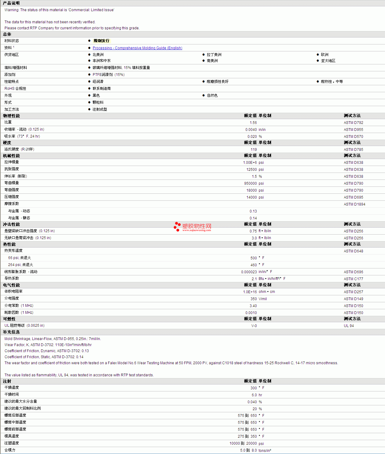 RTP Compounds pps 1302 TFE 15物性表 详情见附件