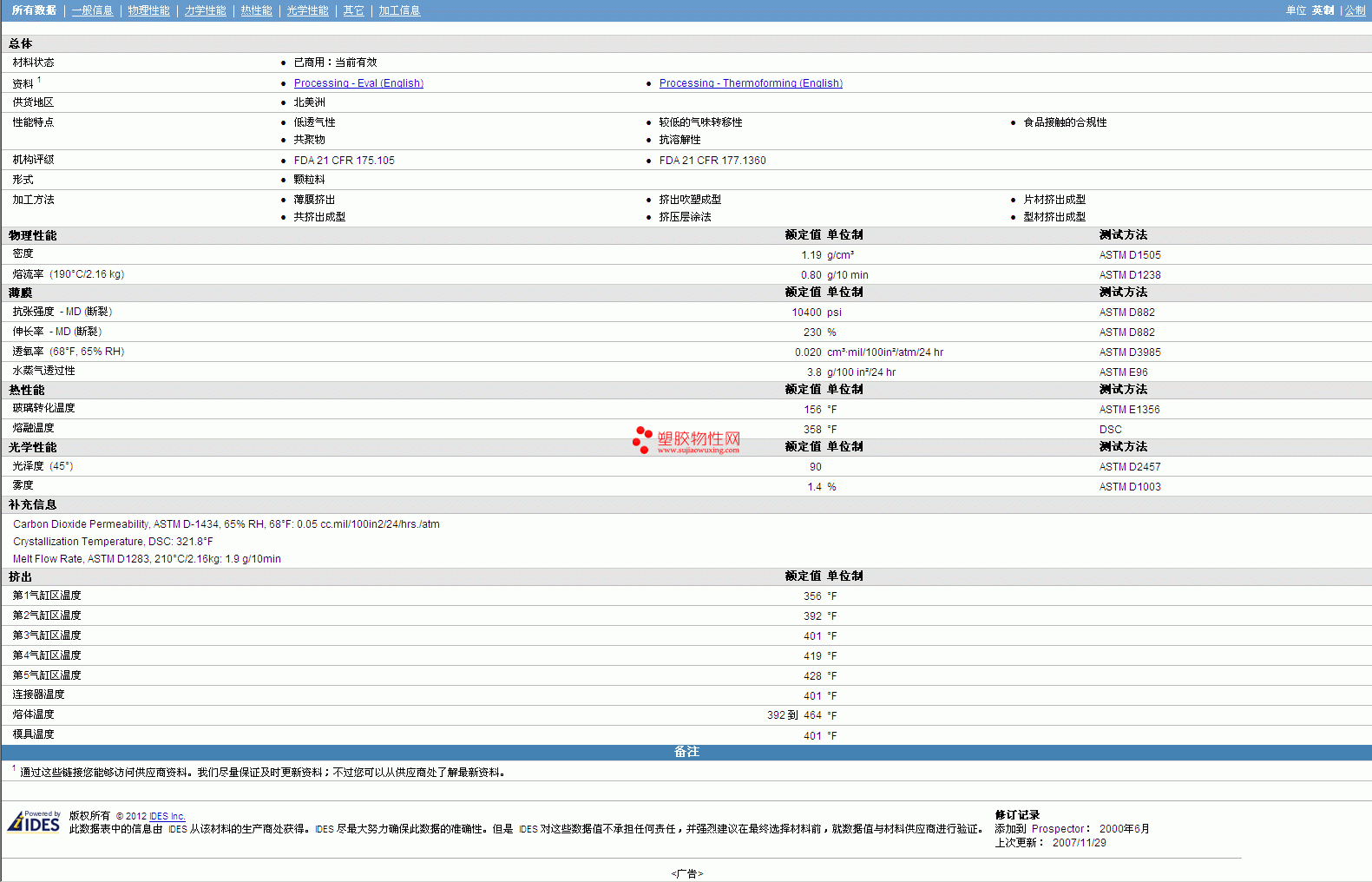 | 透氧率 (68°F, 65% RH) | 0.020 | cm³·mil/100in²/atm/24 hr | ASTM D3985 |