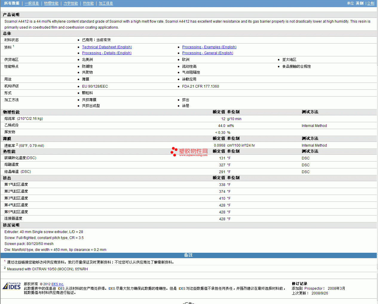 | 乙烯成份 | 44.0 | wt% | Internal Method |