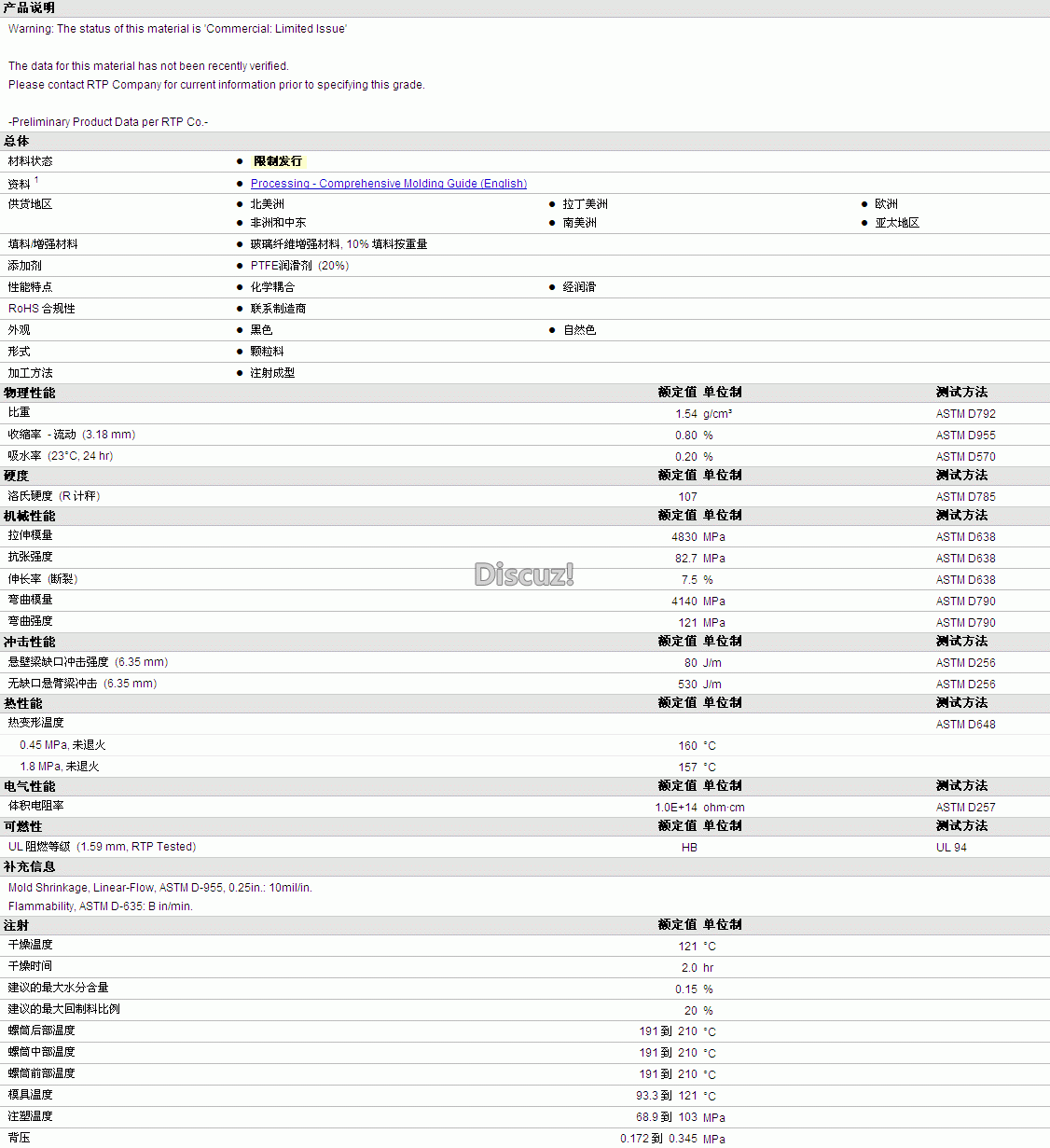 更多RTP Compounds POM 801 CC TFE 20物性表资料见附件: