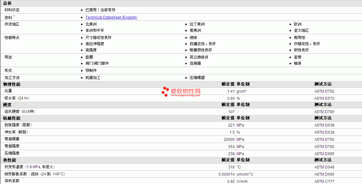 其他工程塑料物性表