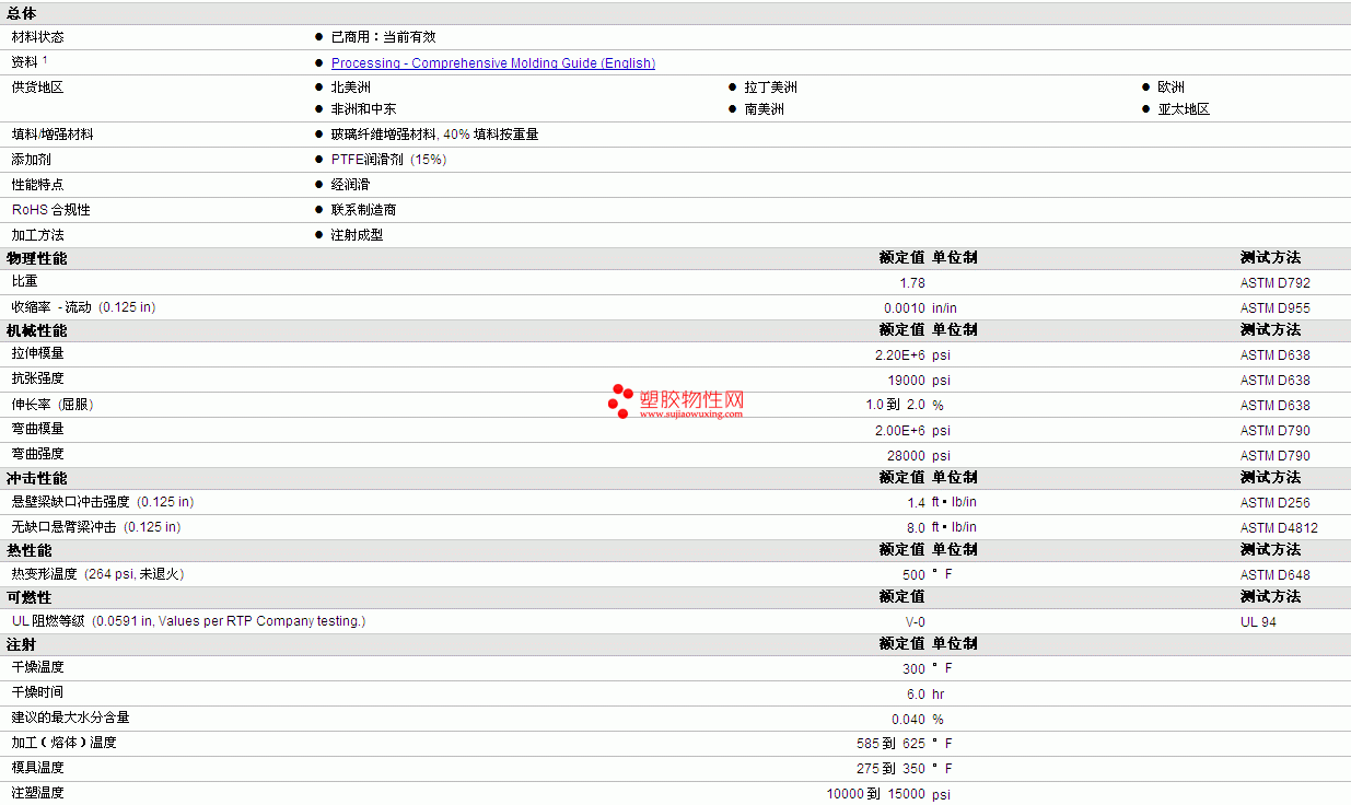 | 收缩率 - 流动 (0.125 in) | 0.0010 | in/in | ASTM D955 |