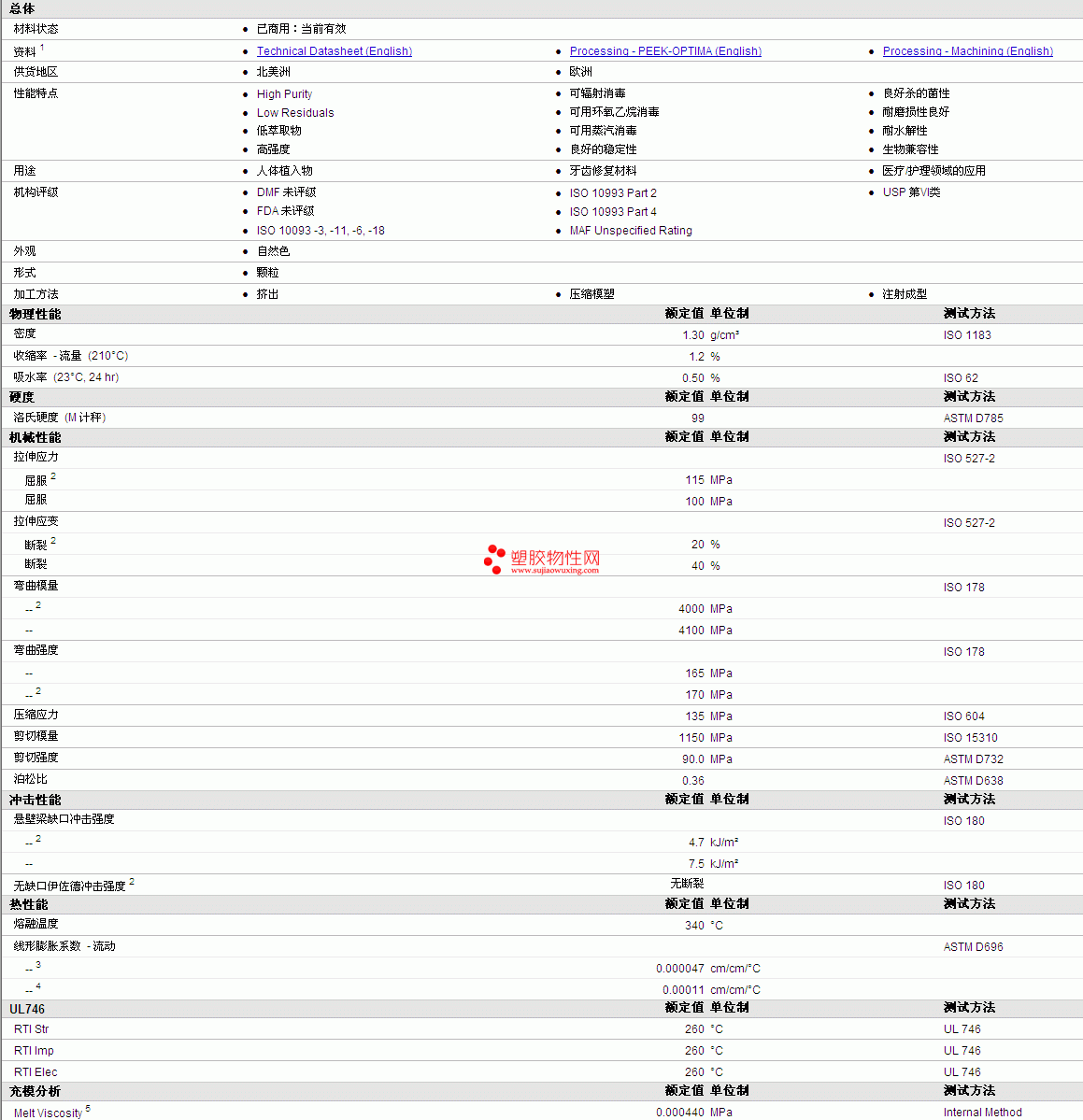 PEEK-OPTIMA LT1物性表详细情况如图