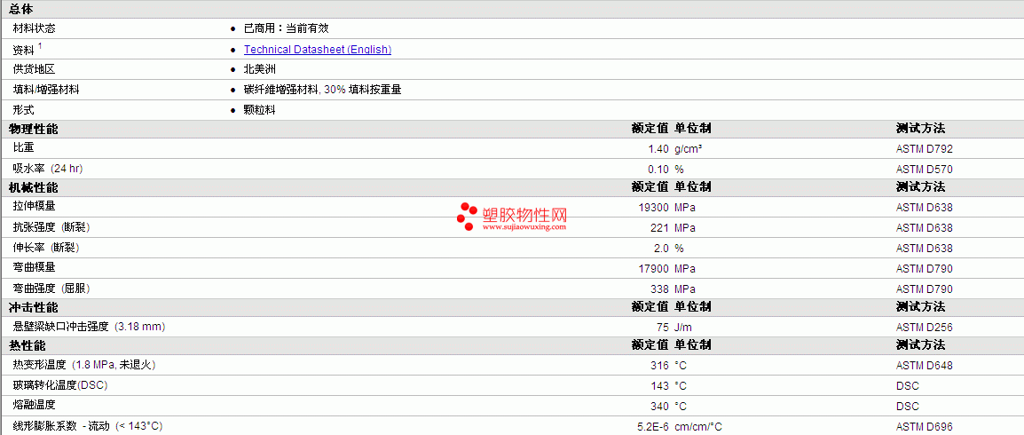 | 拉伸模量 | 19300 | MPa | ASTM D638 |