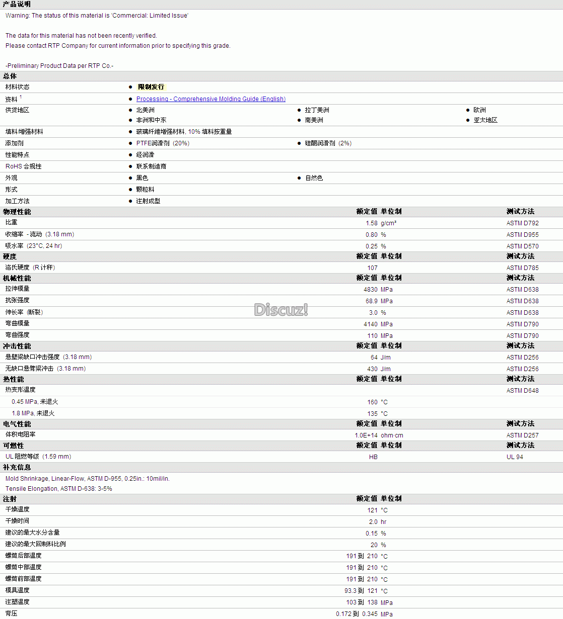 更多RTP Compounds POM 801 TFE 20 SI 2物性表资料见附件: