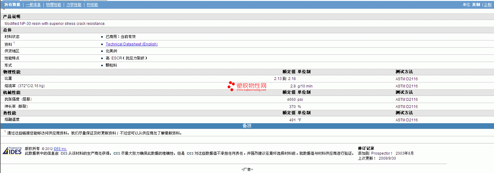 其他工程塑料物性表