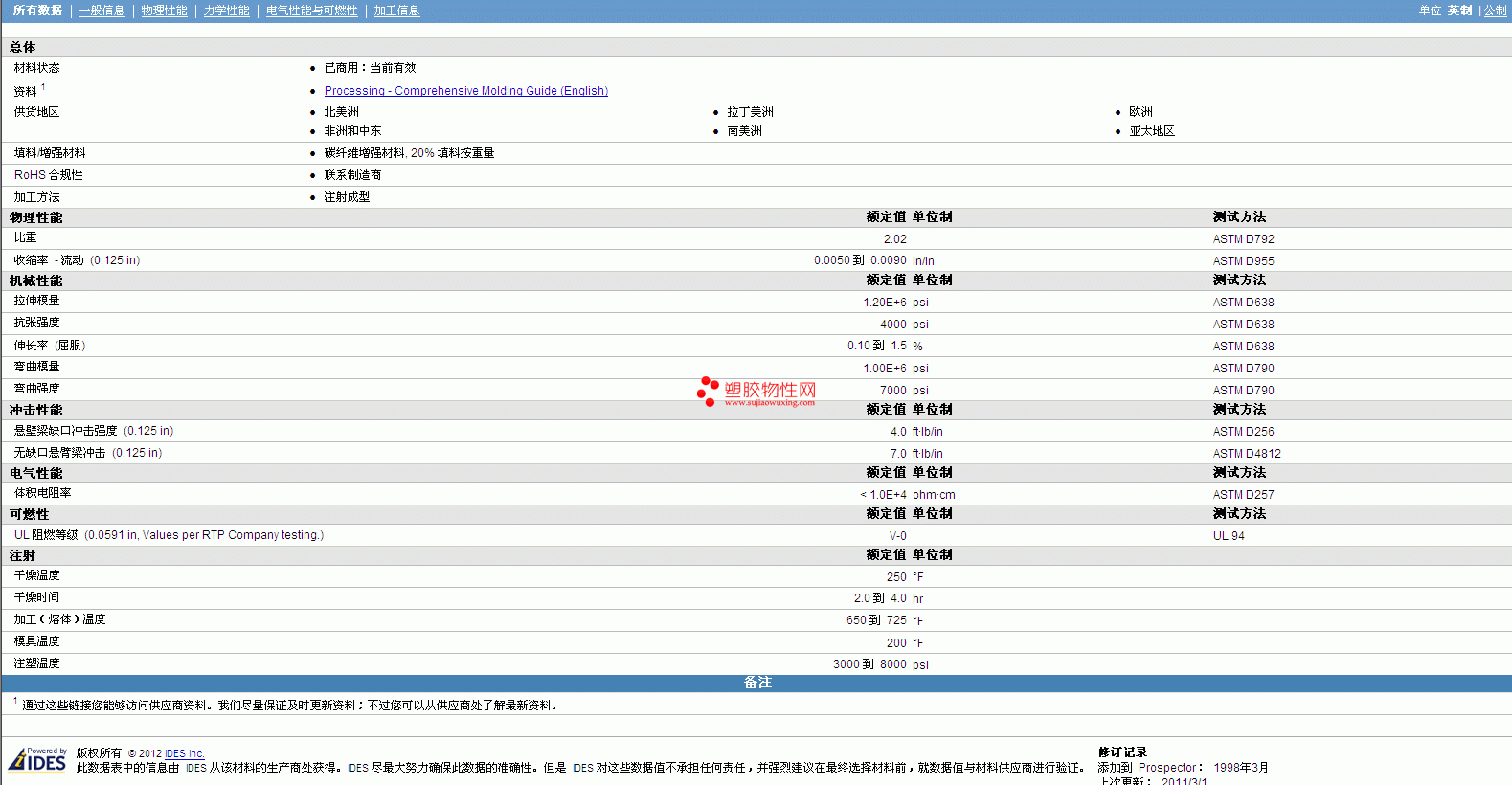CYCOLOY ABS+PC IP1000 Resin 物性表