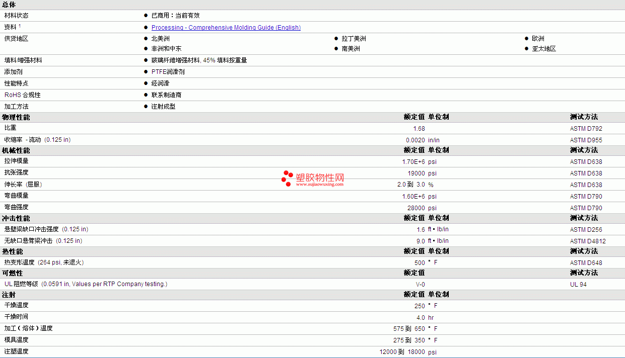 | 抗张强度 | 19000 | psi | ASTM D638 |