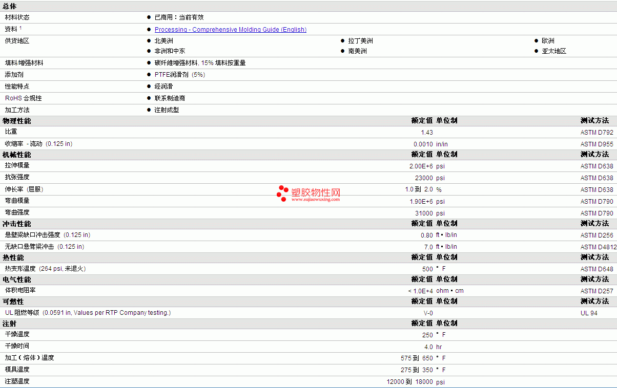 | 抗张强度 | 23000 | psi | ASTM D638 |