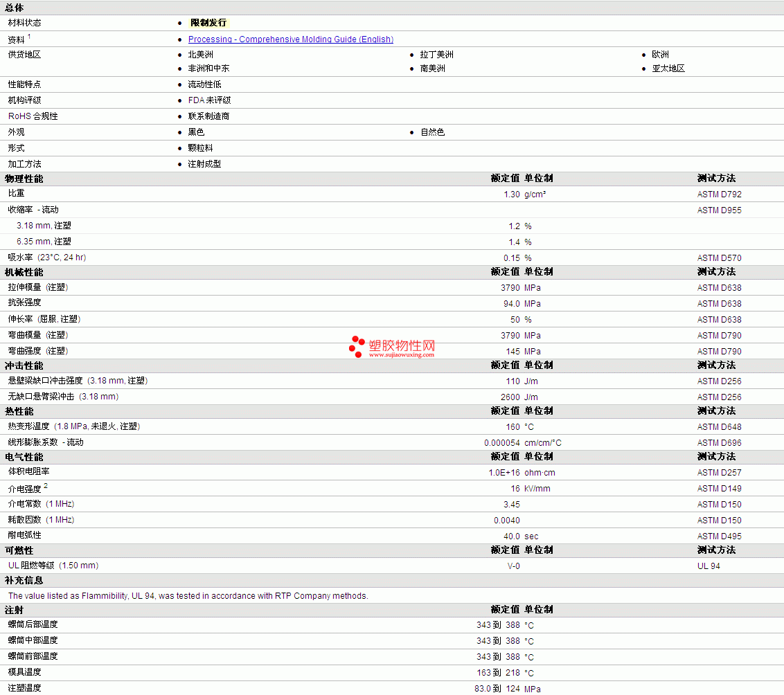 RTP Compounds PEEK 2200 LF Z物性表更多资料见图