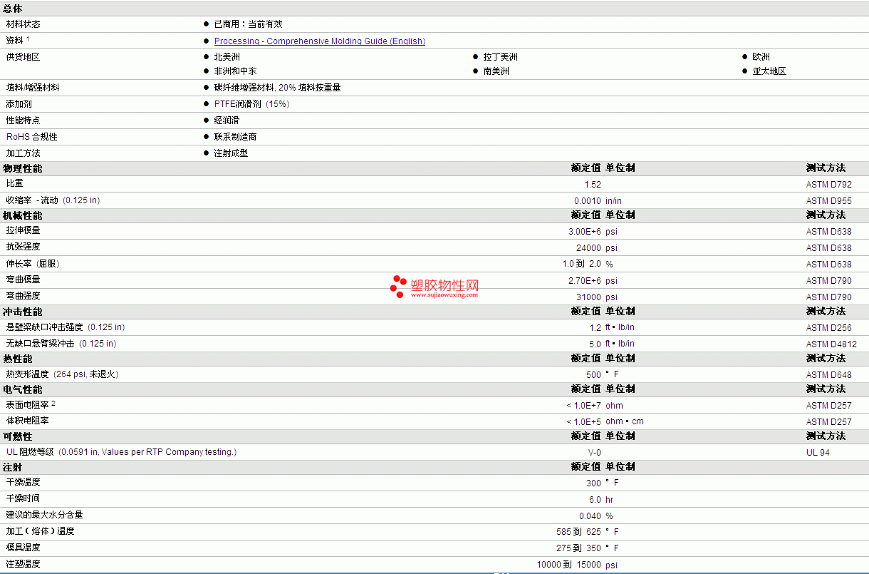 RTP Compounds pps 1383 TFE 15物性表 如图所示