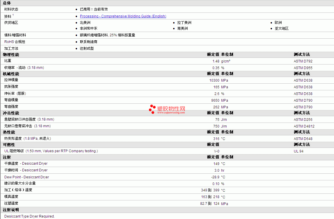 | 弯曲强度 | 262 | MPa | ASTM D790 |