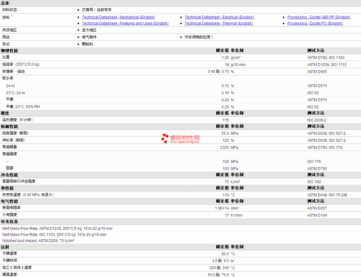 DUCTEL ABS+PC CS100 物性表更多资料见图