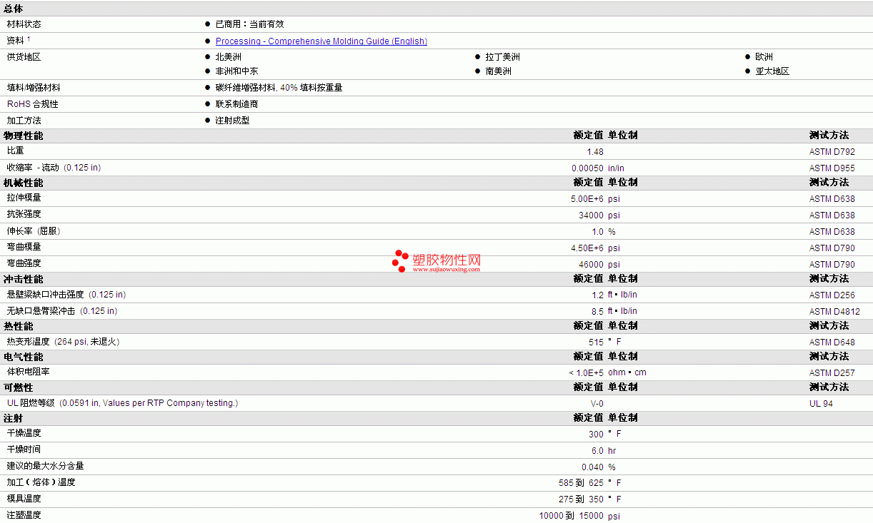 RTP Compounds PPS 1387 D物性表 详细情况如图