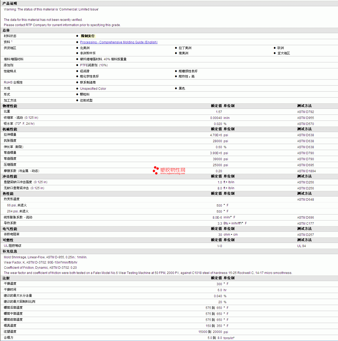 | 机械性能 | 额定值 | 单位制 | 测试方法 |