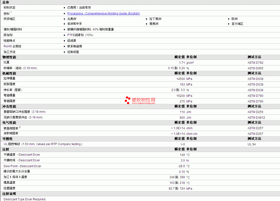 | 拉伸模量 | 14500 | MPa | ASTM D638 |