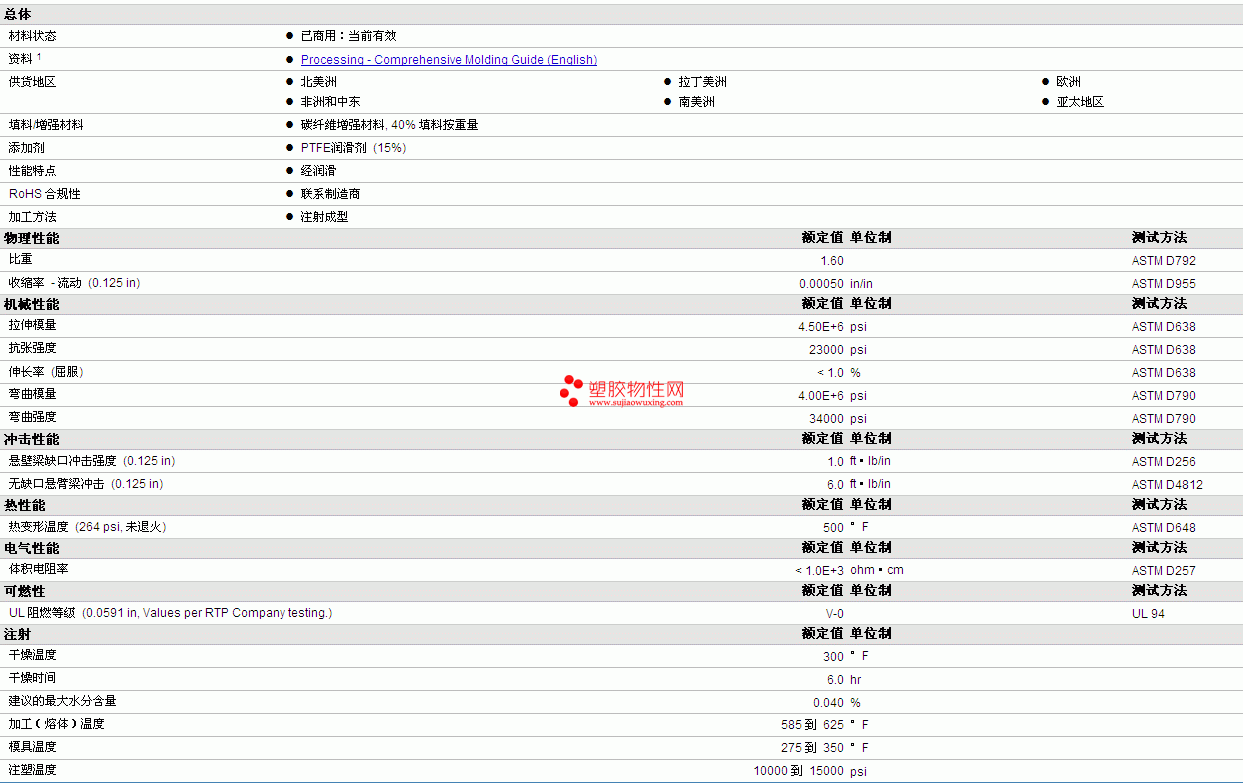 | 拉伸模量 | 4.50E+6 | psi | ASTM D638 |