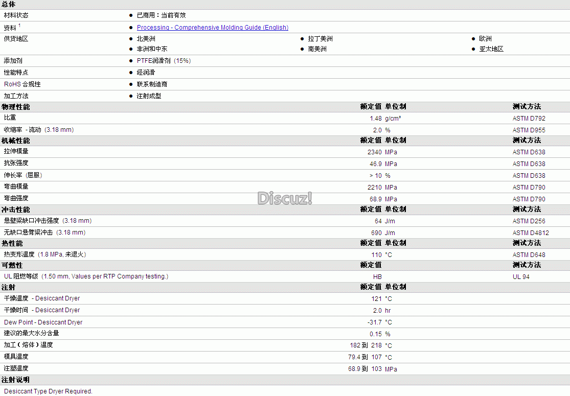 更多RTP Compounds POM 800 TFE 15物性表资料见附件: