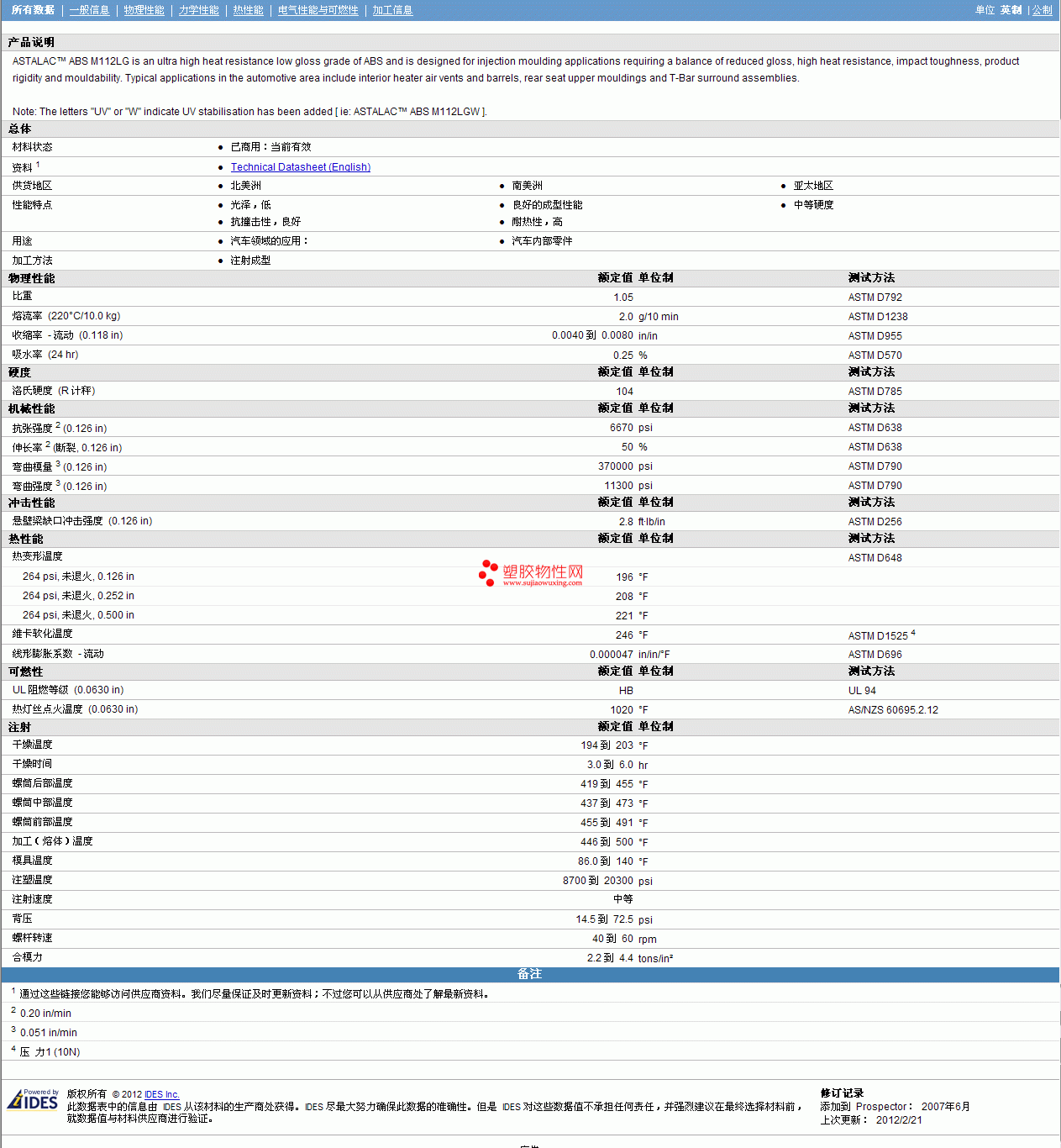 更多ASTALAC MABS ABS M112LG物性表图片,报价、物质安全资料表(MSDS)、材质证明、UL黄卡等,最新行情报价等可来电咨询曾先生:18606048646或QQ:1078333107