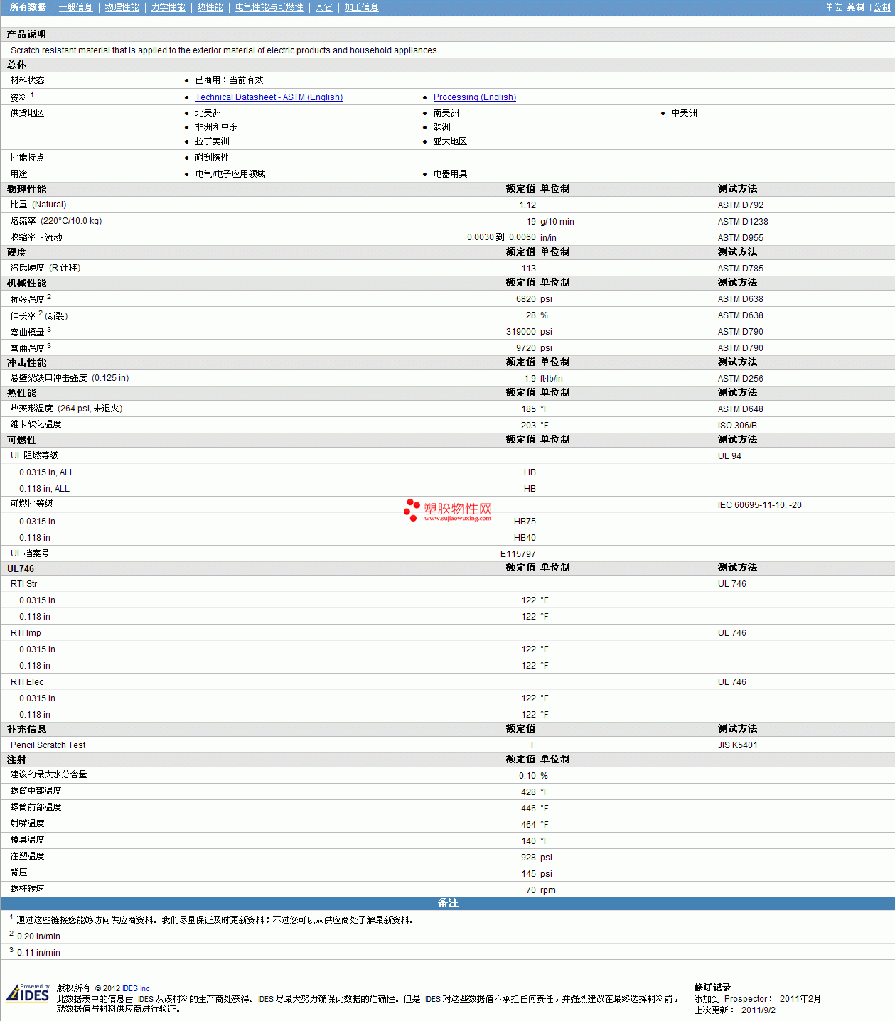 其他工程塑料物性表