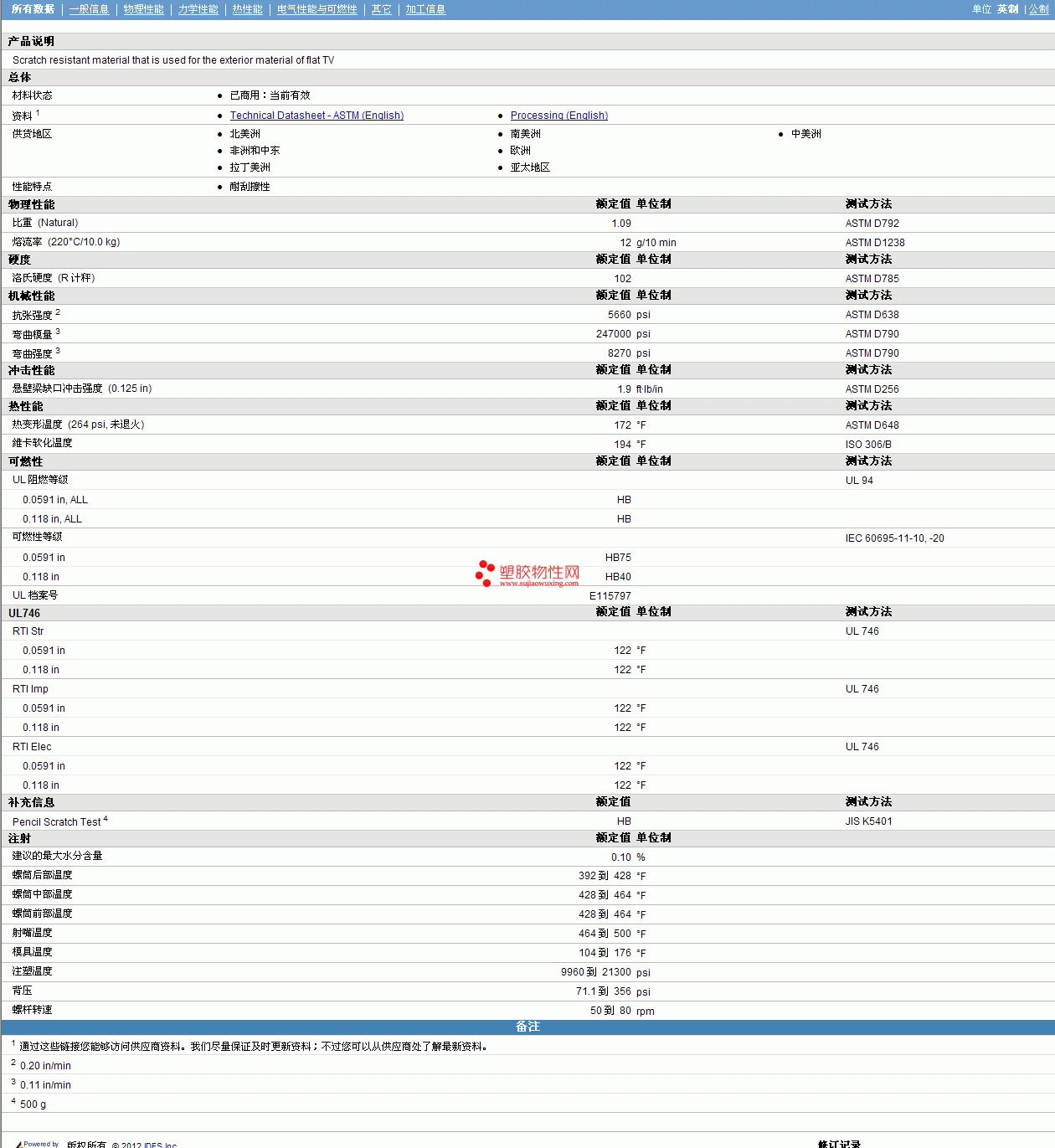 其他工程塑料物性表