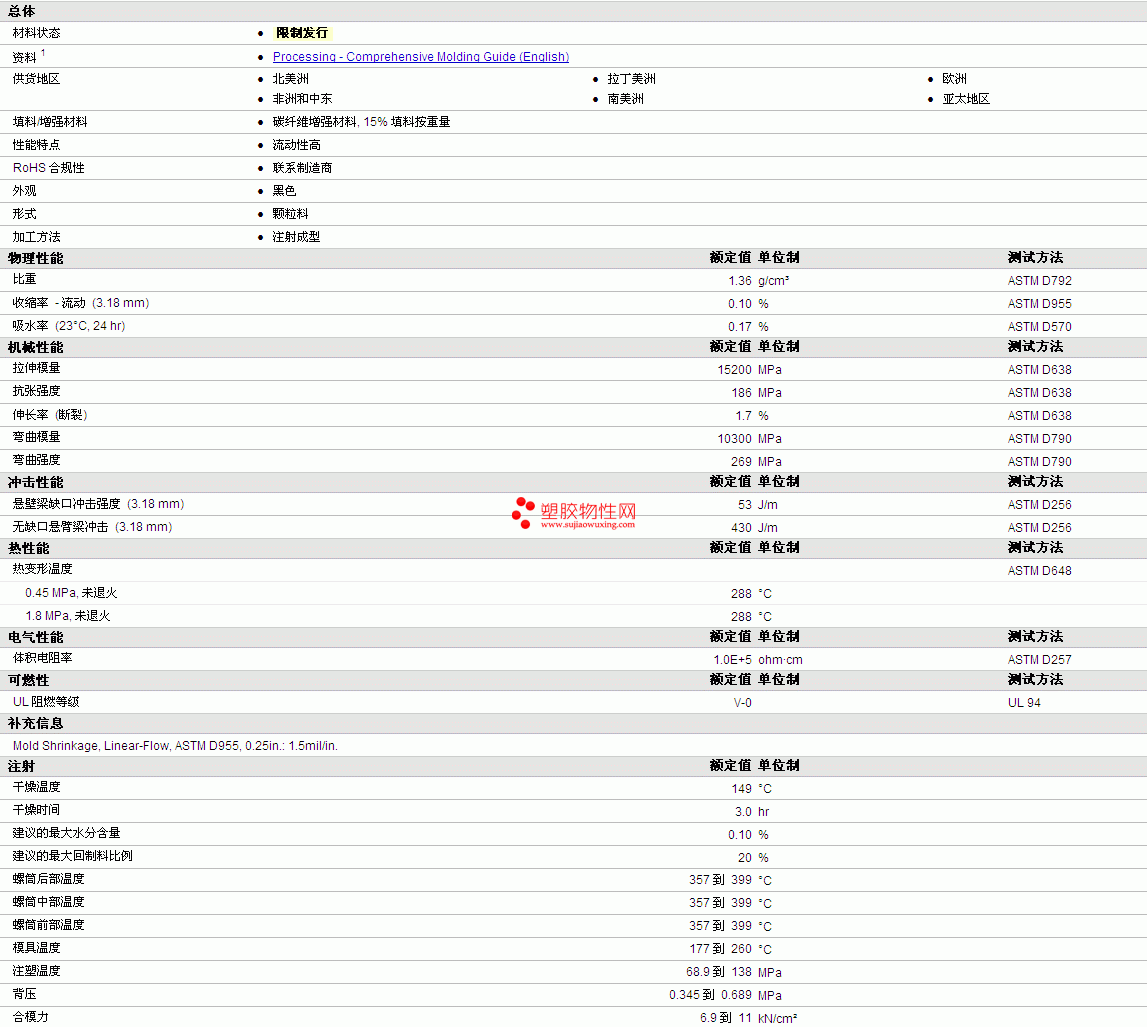 | 拉伸模量 | 15200 | MPa | ASTM D638 |