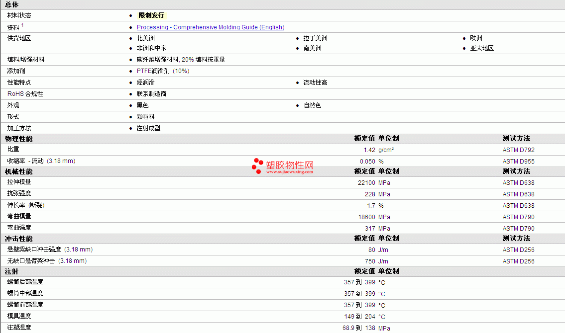 | 拉伸模量 | 22100 | MPa | ASTM D638 |
