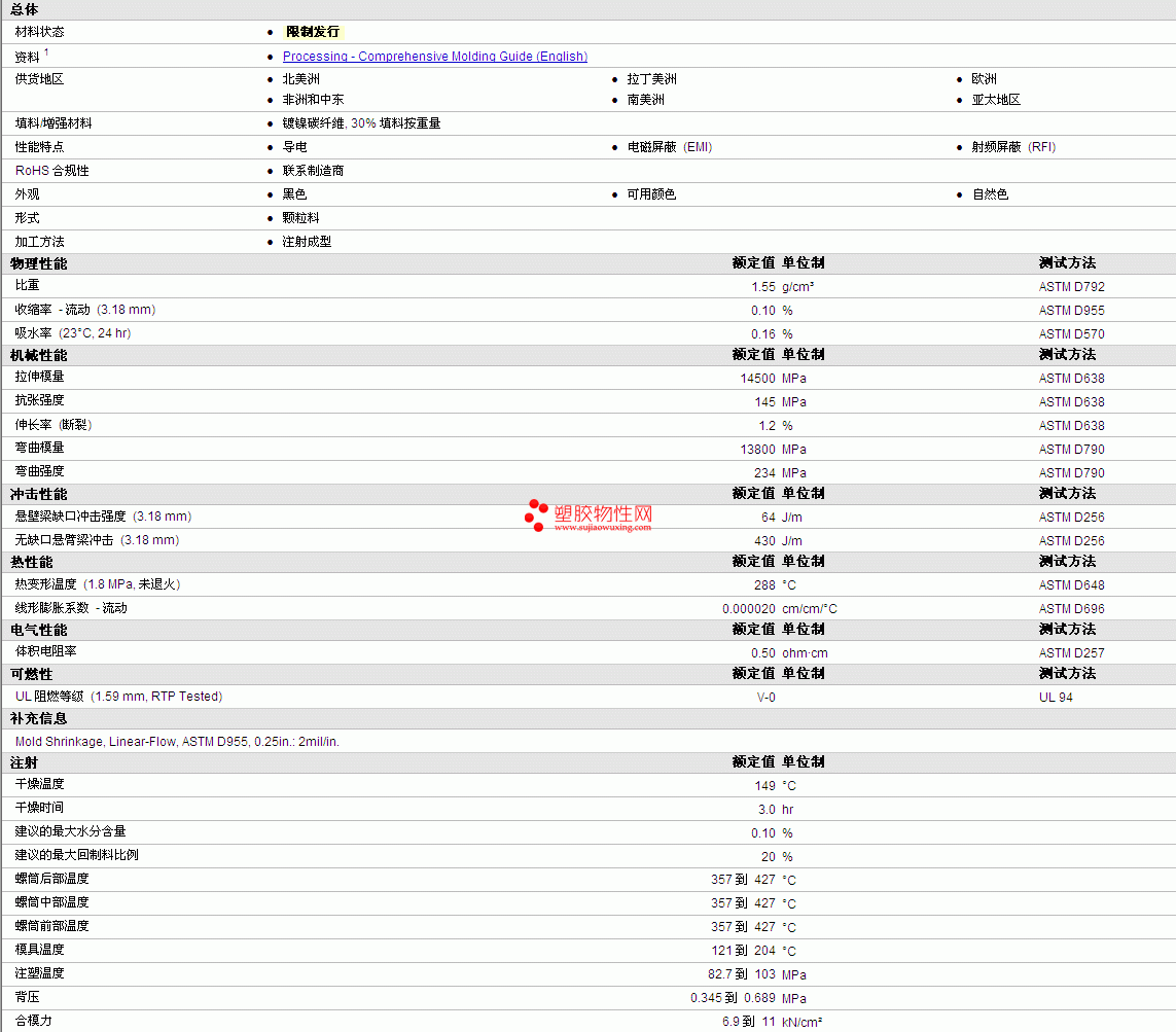| 拉伸模量 | 14500 | MPa | ASTM D638 |
