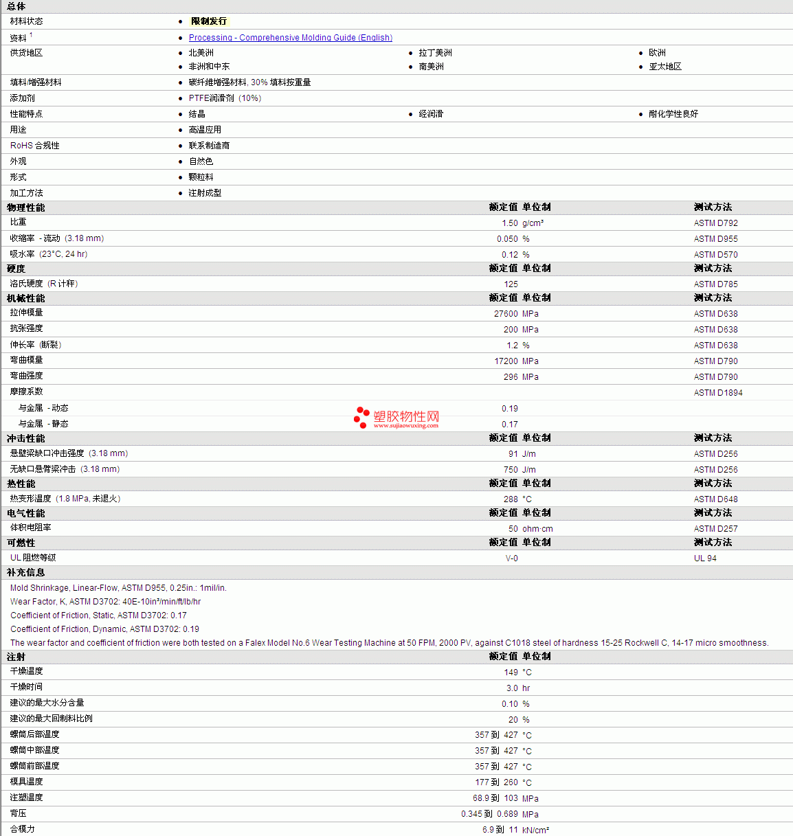 RTP Compounds PEEK 2285 TFE 10物性表如图所示