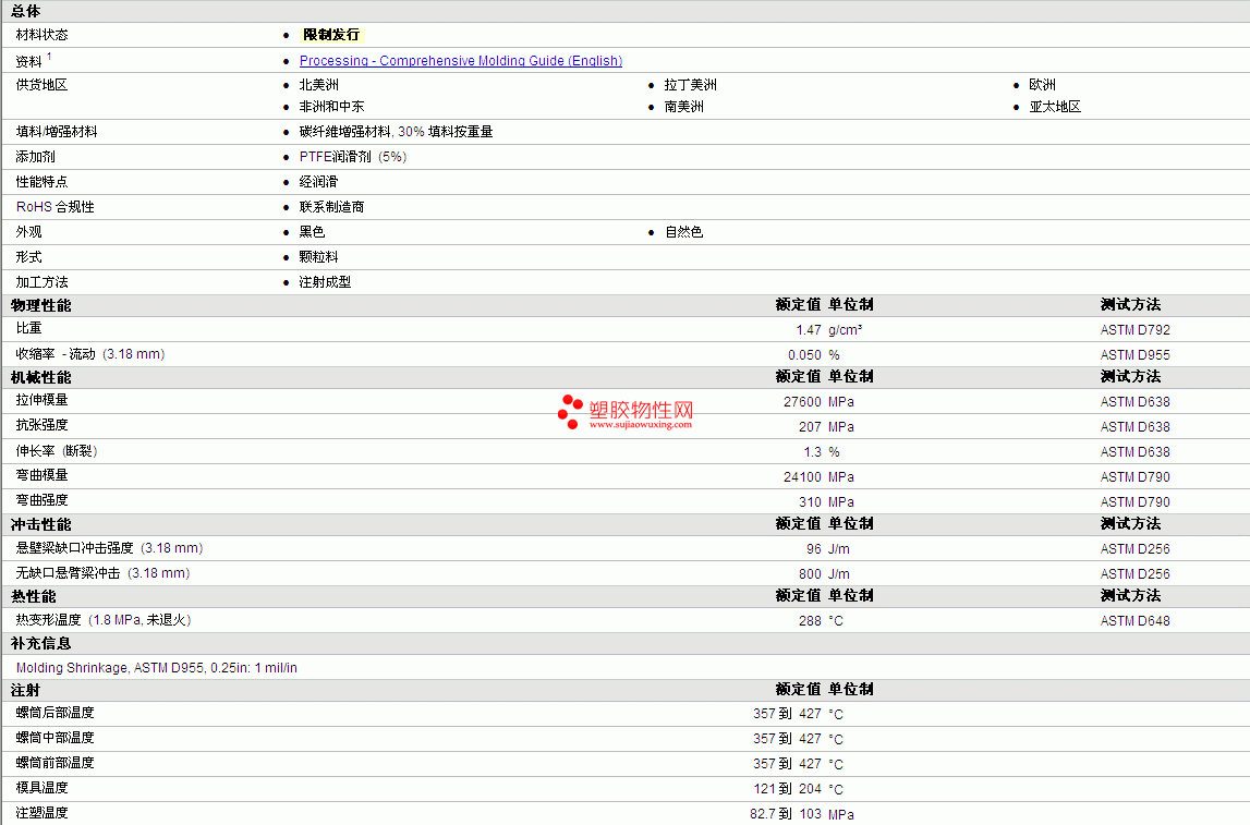 其他工程塑料物性表